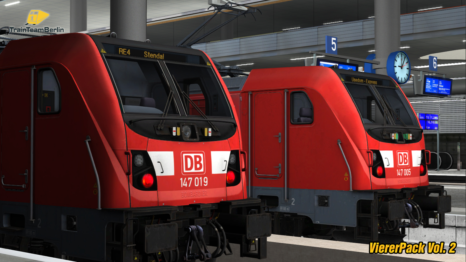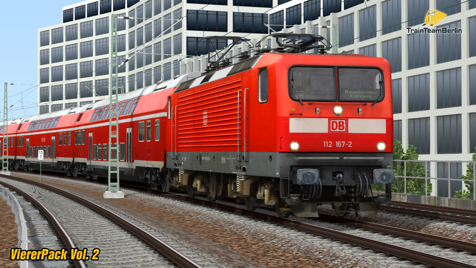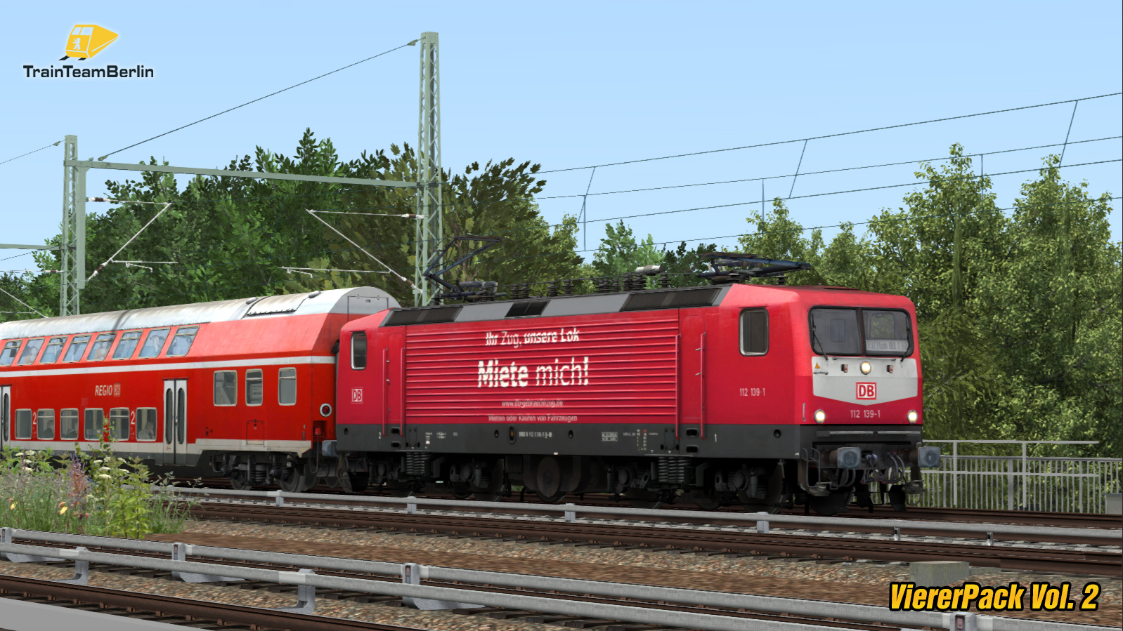 - Baureihe 112.1: E-Lok in 11 (Lackierungs-)Versionen mit konfigurierbaren Features und Originalsound sowie hunderten vorgefertigten Zugzielanzeigen.